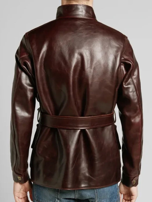 The inner shell features a smooth viscose lining, providing comfort and a luxurious feel against the skin. Designed with a buttoned closure and a waist belt, this jacket ensures a secure fit and adds a touch of rugged elegance. The stand collar and full sleeves with buttoned cuffs enhance its protective and stylish features, making it ideal for both riding and everyday wear.